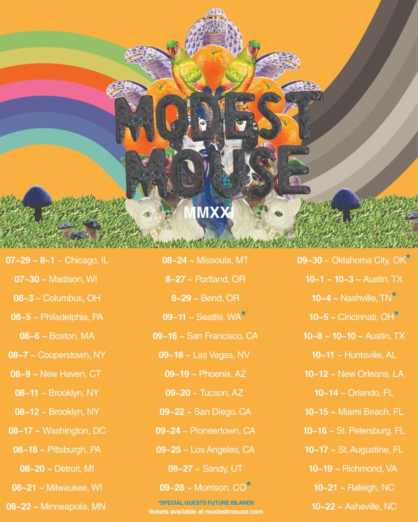 In support of their first full-length album in six years Modest Mouse are scheduled to embark upon a lengthy tour of the United States unfolding between July and October. With stops in Chicago, Philadelphia, New York, Washington, Seattle, San Francisco, Los Angeles and more, tickets for all dates are available to purchase now through the band’s website. Baltimore’s Future Islands are set to provide support on a number of dates within the itinerary.