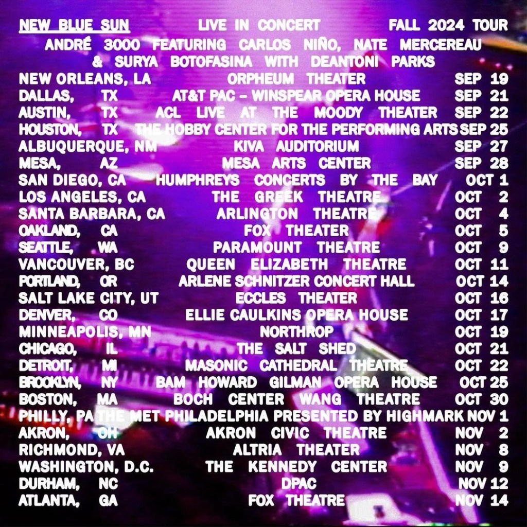 View André 3000’s full late 2024 North American tour schedule below and find ticket information here.