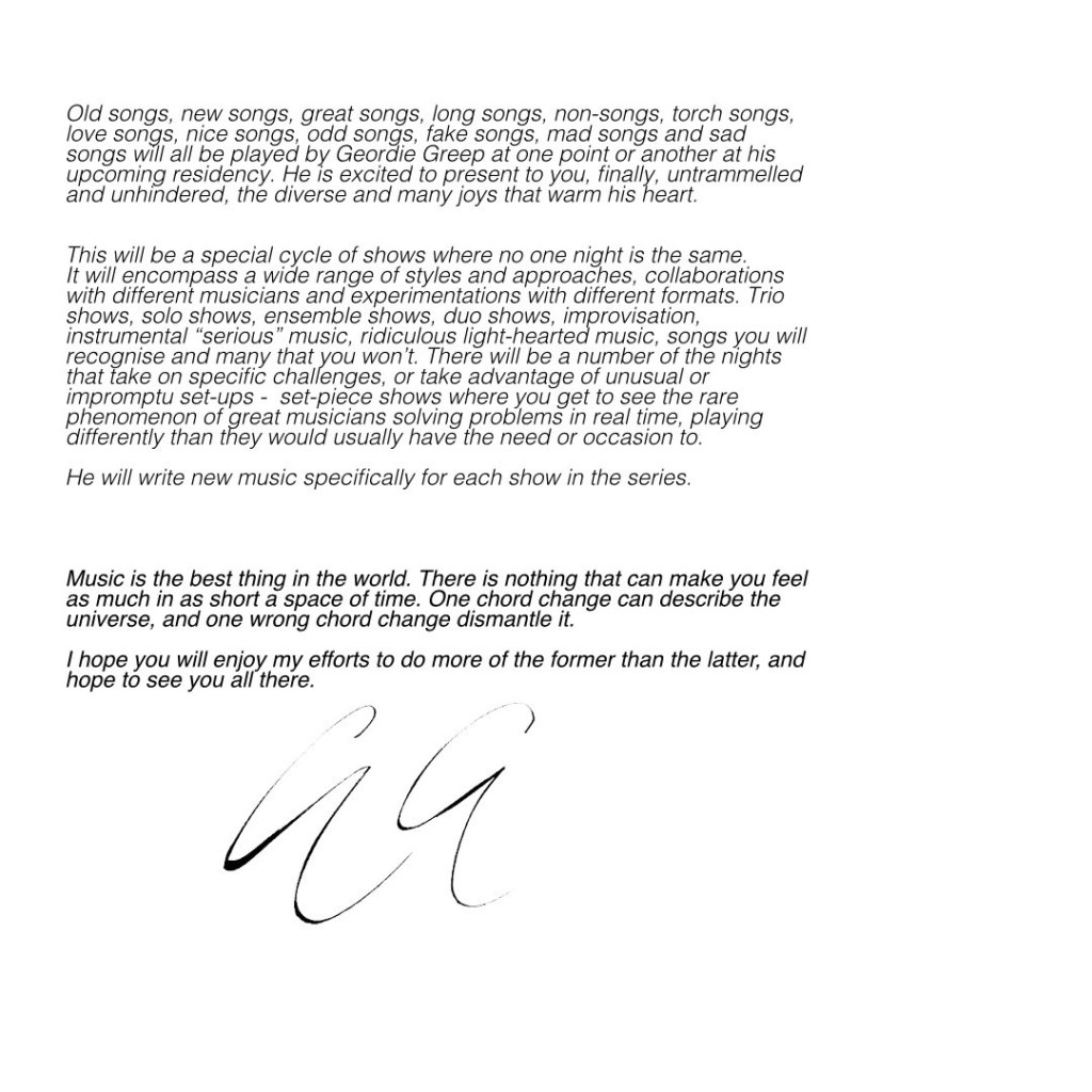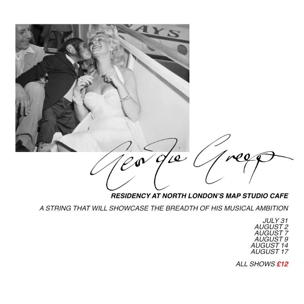 Geordie Greep has announced plans for a live residency held at North London’s MAP Studio Cafe.