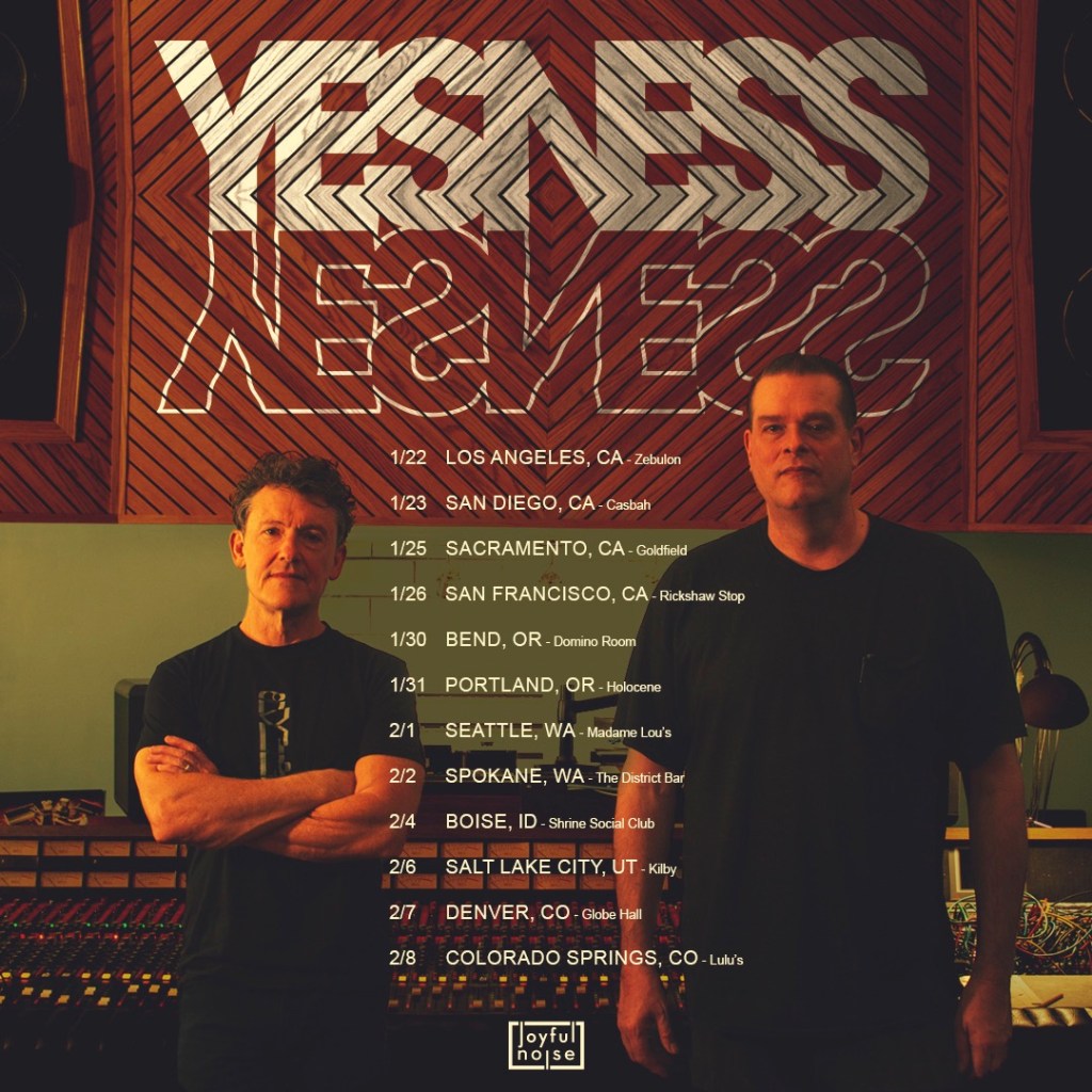 Respectively known and revered for their contributions to the landscape of instrumental rock music as members of Don Caballero and El Ten Eleven, the basis for the newly established duo was first conceived in 2023 through an encounter devised by Joyful Noise Recordings label head Karl Hofstetter. Subsequently maintaining a lengthy virtual correspondence, the pairing of kindred spirits explored the possibilities of a creative partnership over an eight-month period before meeting in person to commence recording sessions for their debut album as Yesness held at Indianapolis studio facility Postal Recording. The band’s See You At The Solipsist Convention is scheduled for arrival in November and will be bolstered by a tour of Western US cities including Los Angeles, San Francisco, Portland, Seattle, Boise, Denver and more. Tickets for all forthcoming tour dates will be available to purchase from September 27th; find further information here.