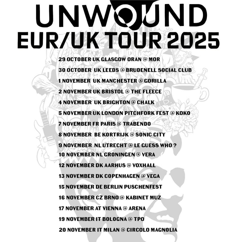 View the promotional poster for Unwound’s 2025 European tour itinerary below and find ticket information here.