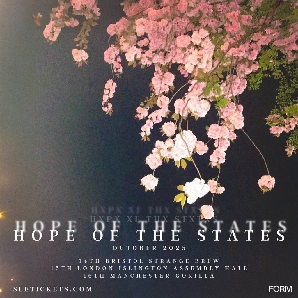 A welcomed return traversing typically brooding, cinematic and feedback-swathed terrains, hear ‘Footage/Steamtrain’ and view the promotional poster for Hope Of The States’ newly announced 2025 tour below.
