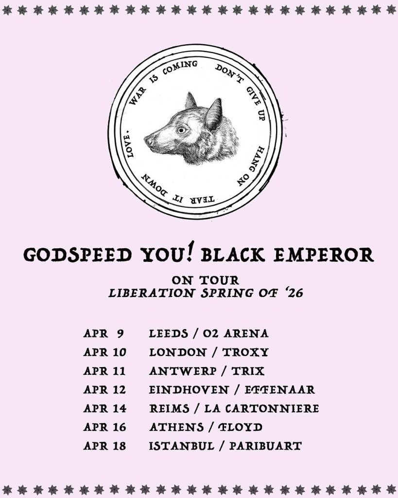 View the promotional poster for Godspeed You! Black Emperor’s newly announced 2026 European tour dates below and find ticket information here.