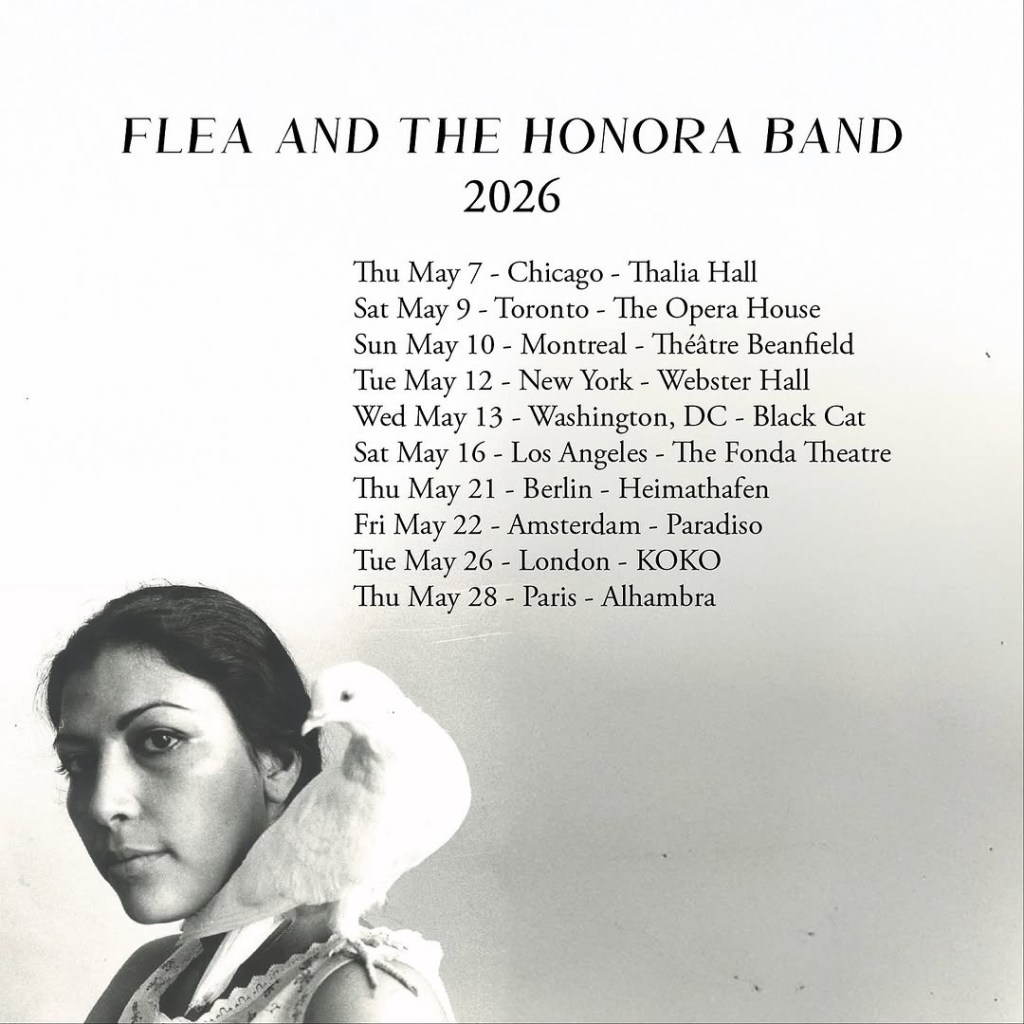 Commencing in early May and comprising ten dates, the newly announced tour will find the famed American-Australian bassist and trumpeter performing concerts in Chicago, Toronto, Montreal, New York City, Washington, Los Angeles, Berlin, Amsterdam, London and Paris to promote the release of his approaching debut full-length solo album Honora. Throughout the itinerary Flea will be joined on stage by an assemblage of the instrumentalists that contributed to his newly conceived studio effort including bassist Anna Butterss, Grammy Award-winning multi-instrumentalist Josh Johnson, guitarist Jeff Parker (Isotope 217, Tortoise) and drummer Deantoni Parks (Bosnian Rainbows, KUDU, The Mars Volta) as well as unnamed special guests.